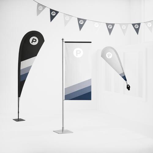 Machen Sie mit wehenden Fahnen auf Ihr Unternehmen aufmerksam, indem Sie Flaggen mit Ihrem Firmenlogo versehen.
