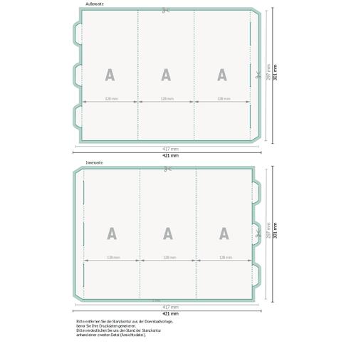 - Datenformat (inkl. 2 mm Beschnitt): 42,1 x 30,1 cm