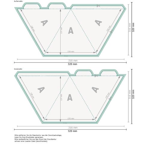 - alle Seiten des Aufstellers können jeweils unterschiedlich gestaltet werden