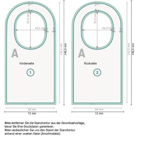 Druckdatenhinweise Flaschenanhänger, beidseitig bedruckt