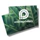 - Vorderseite vierfarbig bedruckt, Rückseite unbedruckt (4/0)