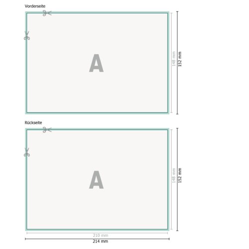 - umlaufend 2 mm Beschnitt anlegen, wichtige Informationen mit mind. 4 mm Abstand zum Endformat