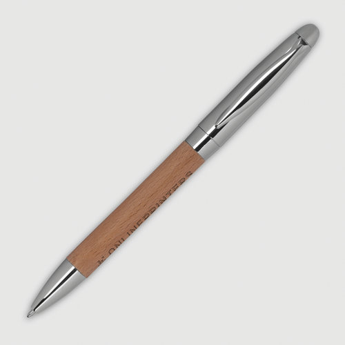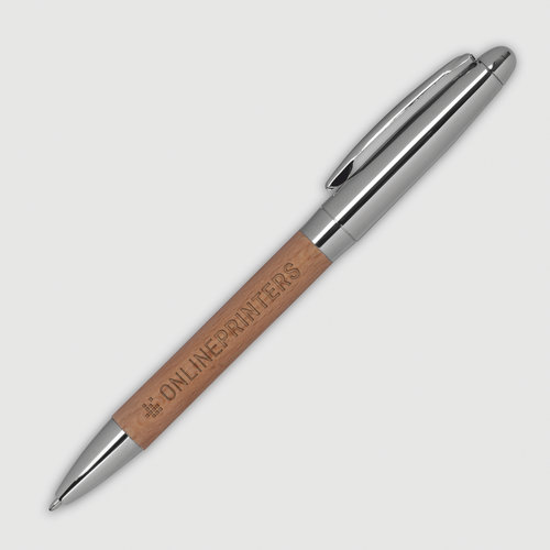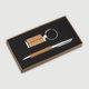 Set bestehend aus Kugelschreiber mit blauschreibender Mine und Schlüsselanhänger in einer Holz-Metall-Kombination