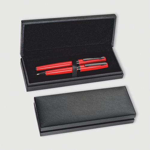 Metall-Schreibset bestehend aus einem Drehkugelschreiber mit Großraummine und einem Rollerball