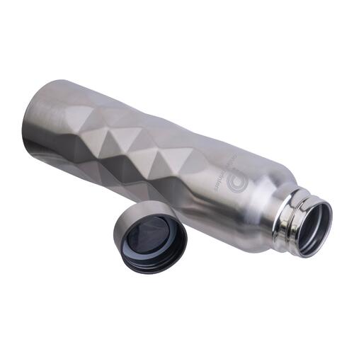 • Einwandige Trinkflasche aus recyceltem 304er-Edelstahl mit Trageschlaufe am Deckel und einem Füllvermögen von 1.000 ml